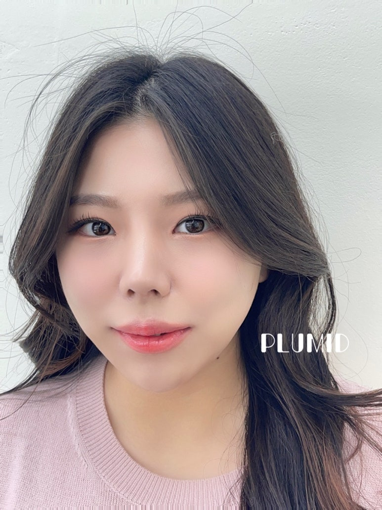 눈매는 또렷하게 강조하고, 살짝 긴 속눈썹을 붙여 포인트를 주었어요.